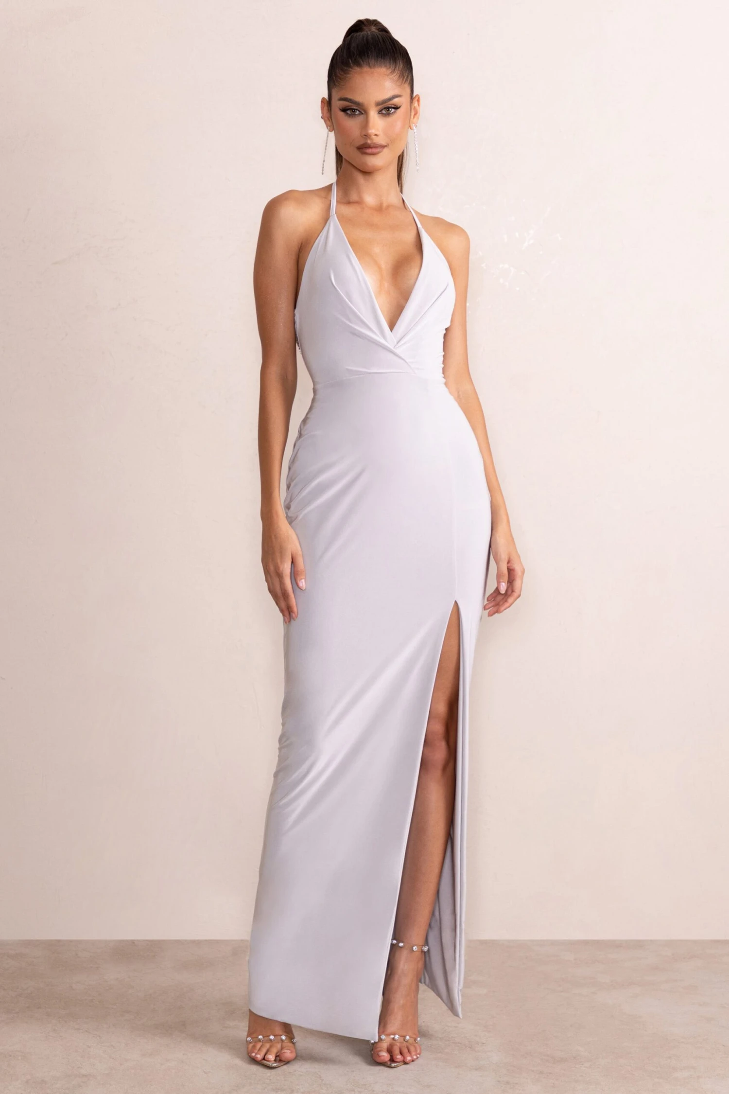 Opt for a high-impact look this party season in Amira. This showstopping silver dress is guaranteed to make a statement. Featuring a plunge neckline with cami straps, a thigh-high split to show off your bronzed pins, and a cowl back, Amira perfectly balances sultry with sophistication for an unforgettable look. The beautiful feminine silhouette promises to turn heads, whatever your event.