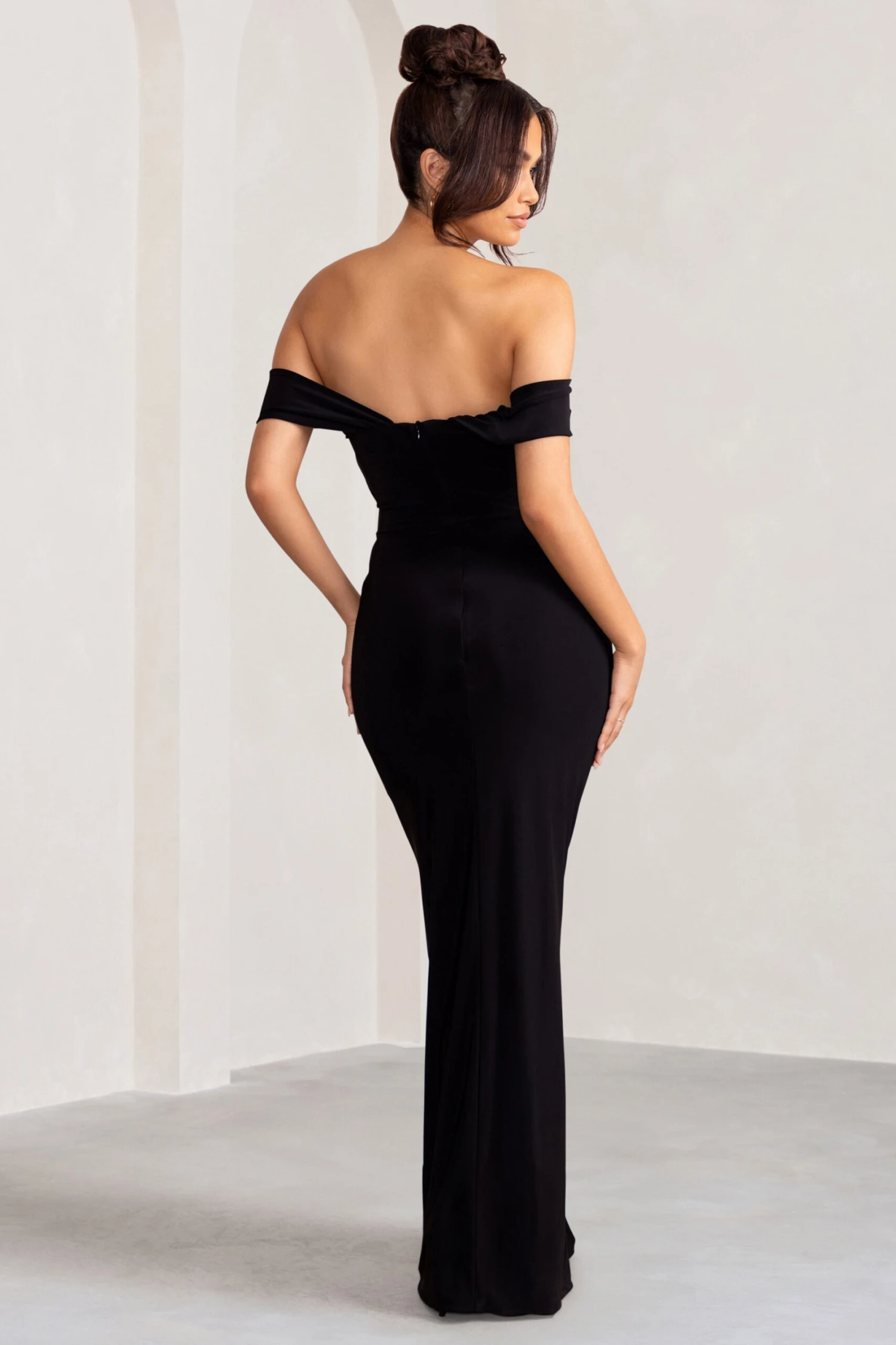 Make a statement in our stunning black maxi dress, Arella. Crafted in our slinky double-lined premium jersey, this maxi dress will effortlessly skim your silhouette for a sleek and sophisticated look. Featuring an asymmetric Bardot neckline with cut-out twist detailing and cascading hemline, Arella is the epitome of chic event dressing. Steal the spotlight in Club L at your next social occasion.