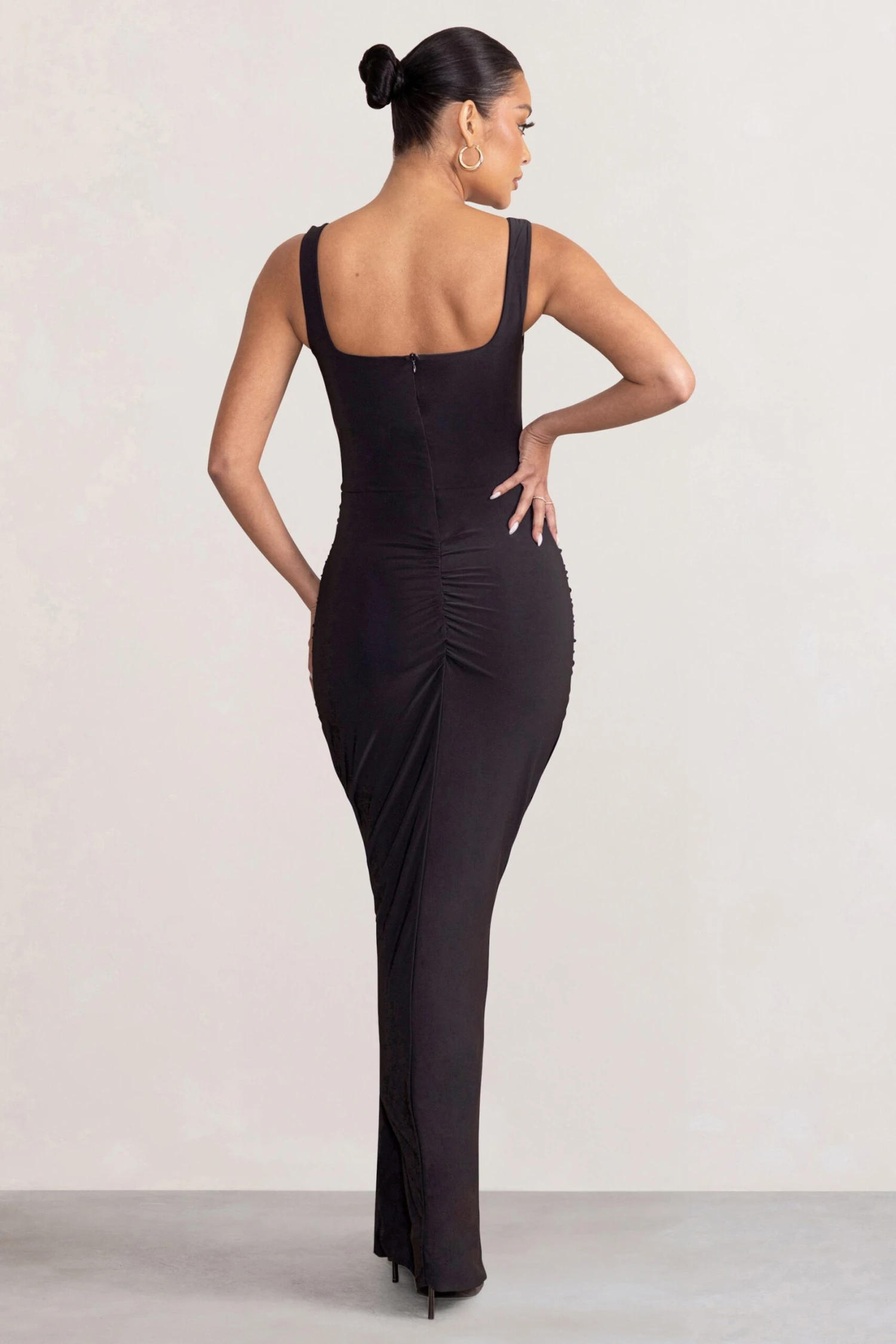 Showcase your bump at that upcoming baby shower in our figure-framing Avril maxi dress. Designed in a classic black shade of our signature stretch jersey, this maternity maxi dress features a square neckline with wide shoulder straps and a split full-length skirt. Finish Avril with a pair of diamond earrings like our statement