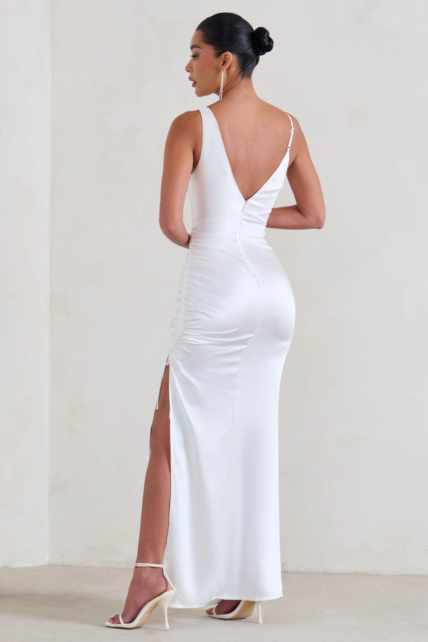 Belonging | White Ruched Cowl Maxi Dress