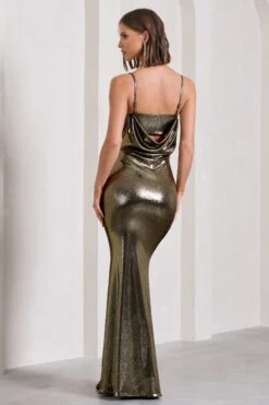 Demure | Black Ruched Long-Sleeved Split Fishtail Maxi Dress