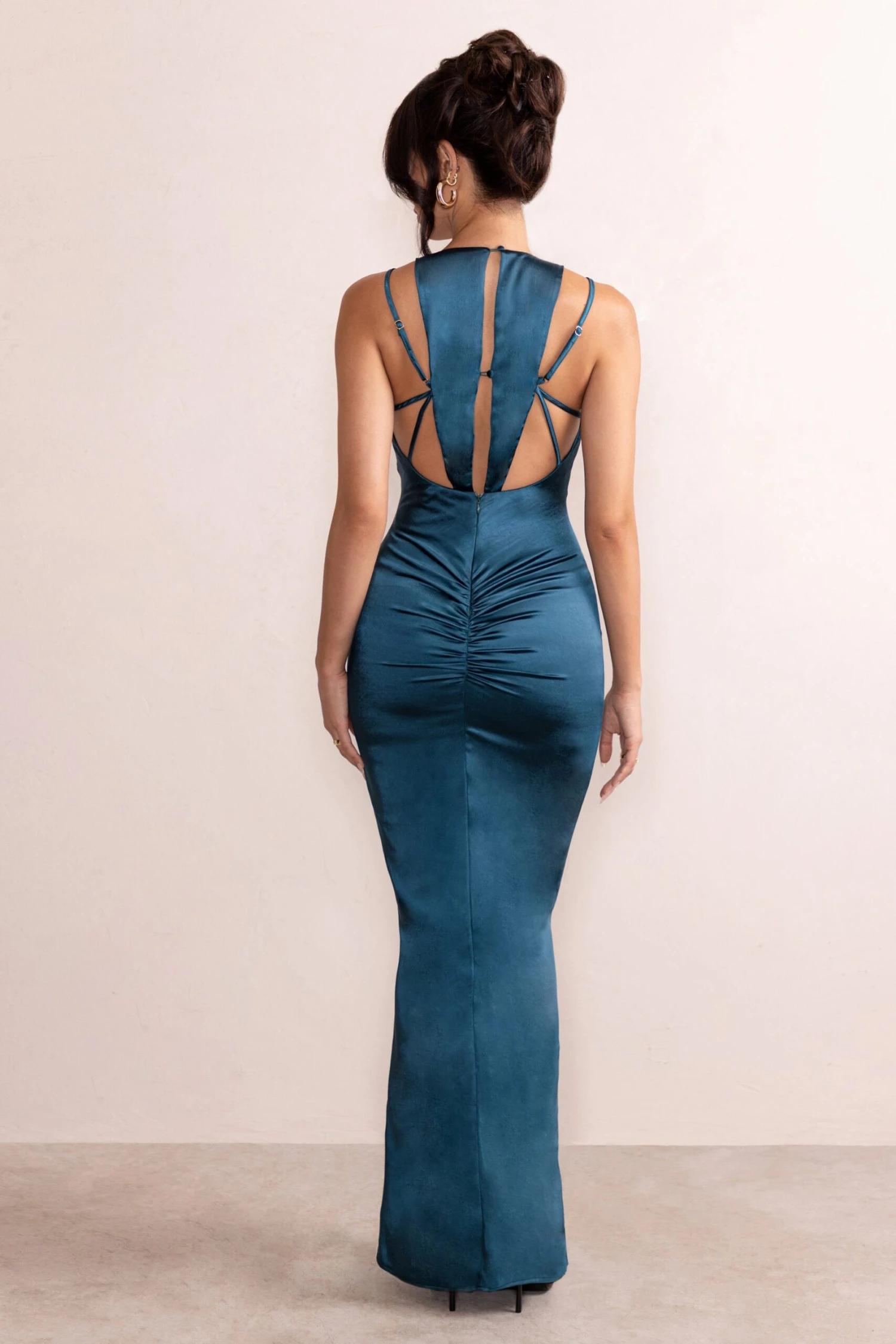 Be the first to review “Emery | Teal Satin Plunge Neck Strappy Back Maxi Dress” Cancel reply