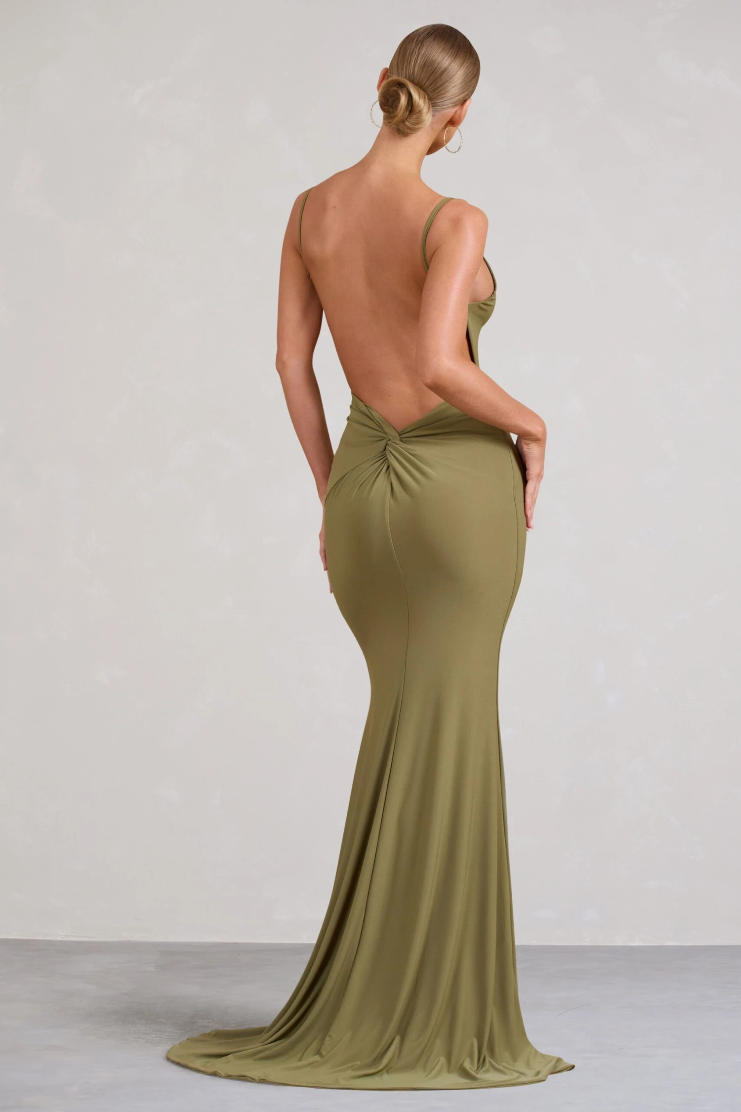 Whatever evening event you have on your agenda, make it extra memorable in a classic gown like Endless Love. This olive green maxi dress exudes elegance with a plunging neckline held from fine cami straps and a floor-sweeping fishtail skirt. Style Endless Love with a slick bun and sparkly accents for the perfect graduation party or wedding guest look.