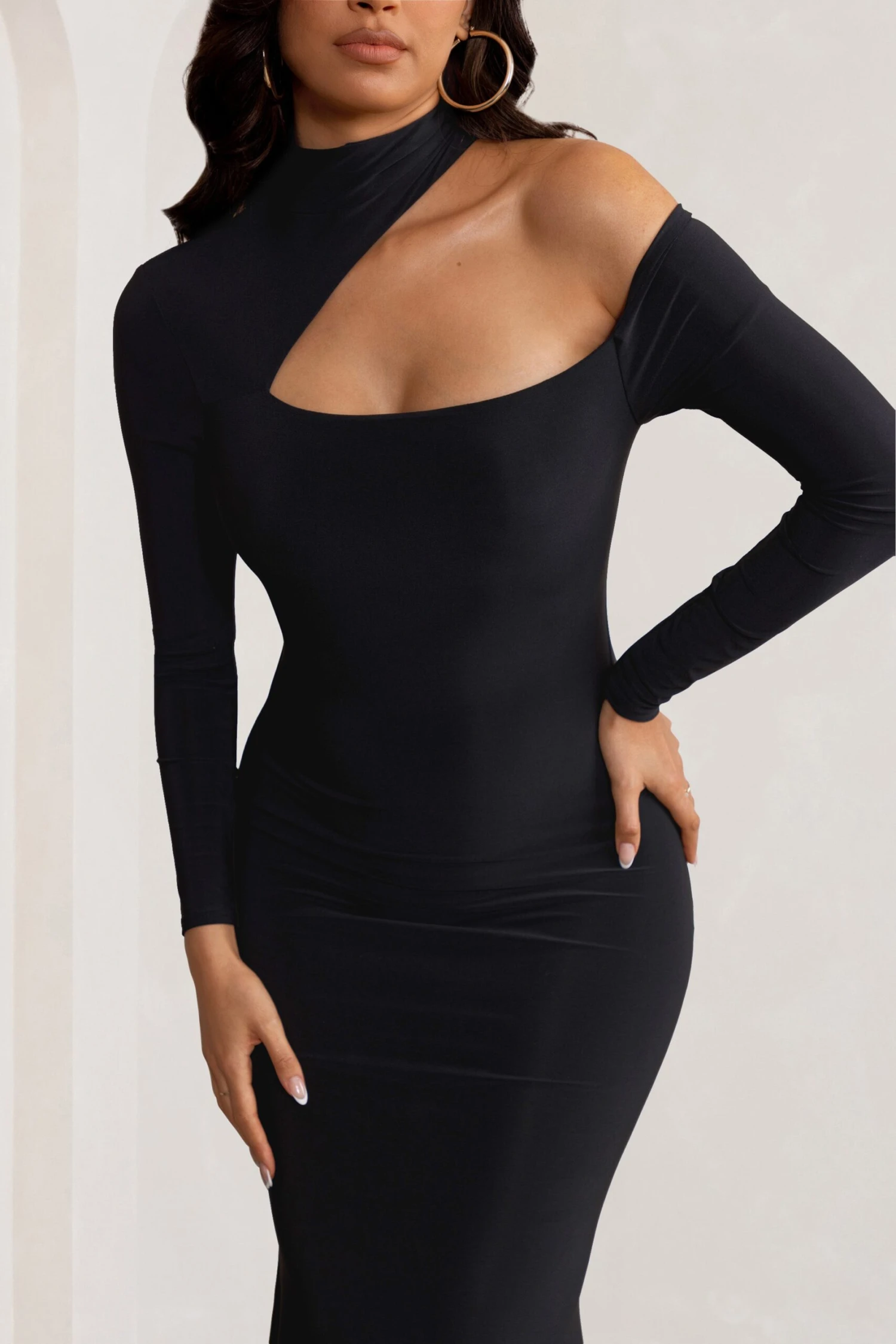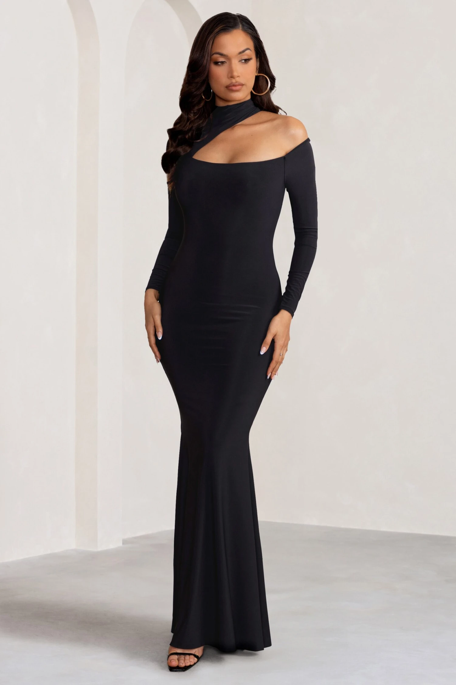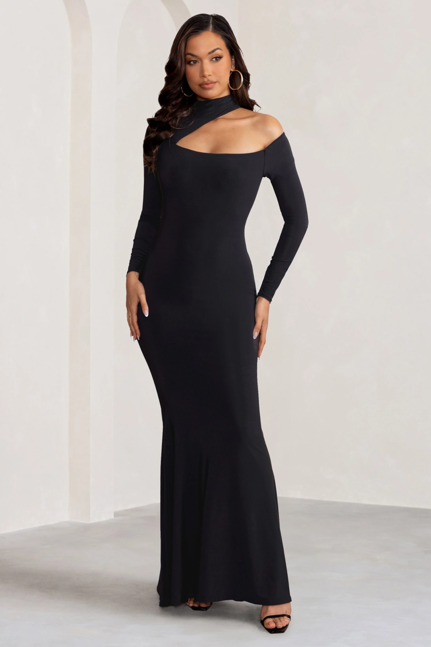 Farrah | Black High Neck Maxi Dress With Cut-Out Neckline