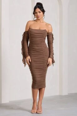Premium jersey and mesh in Mocha (95% Polyester, 5% Elastane)