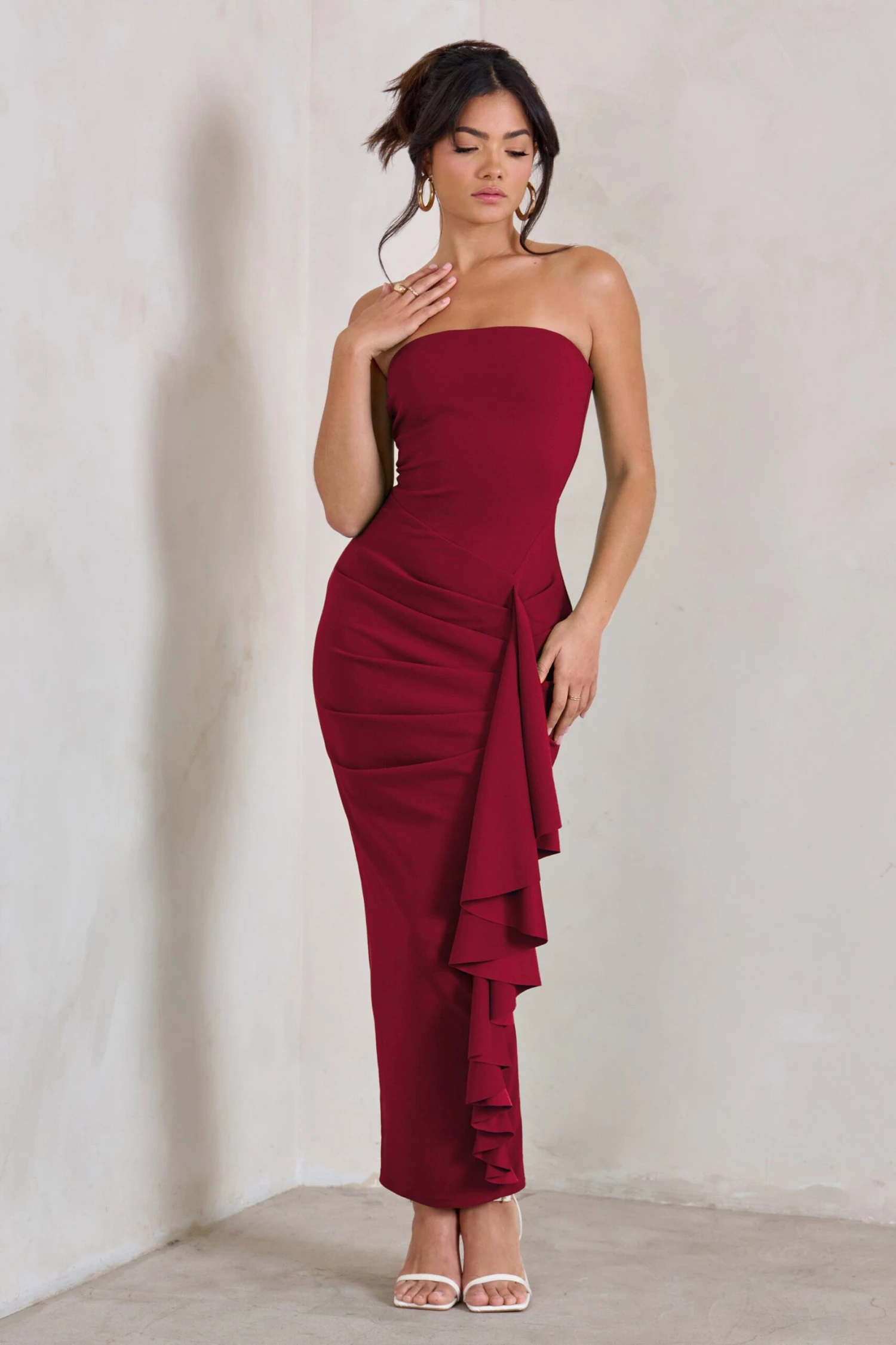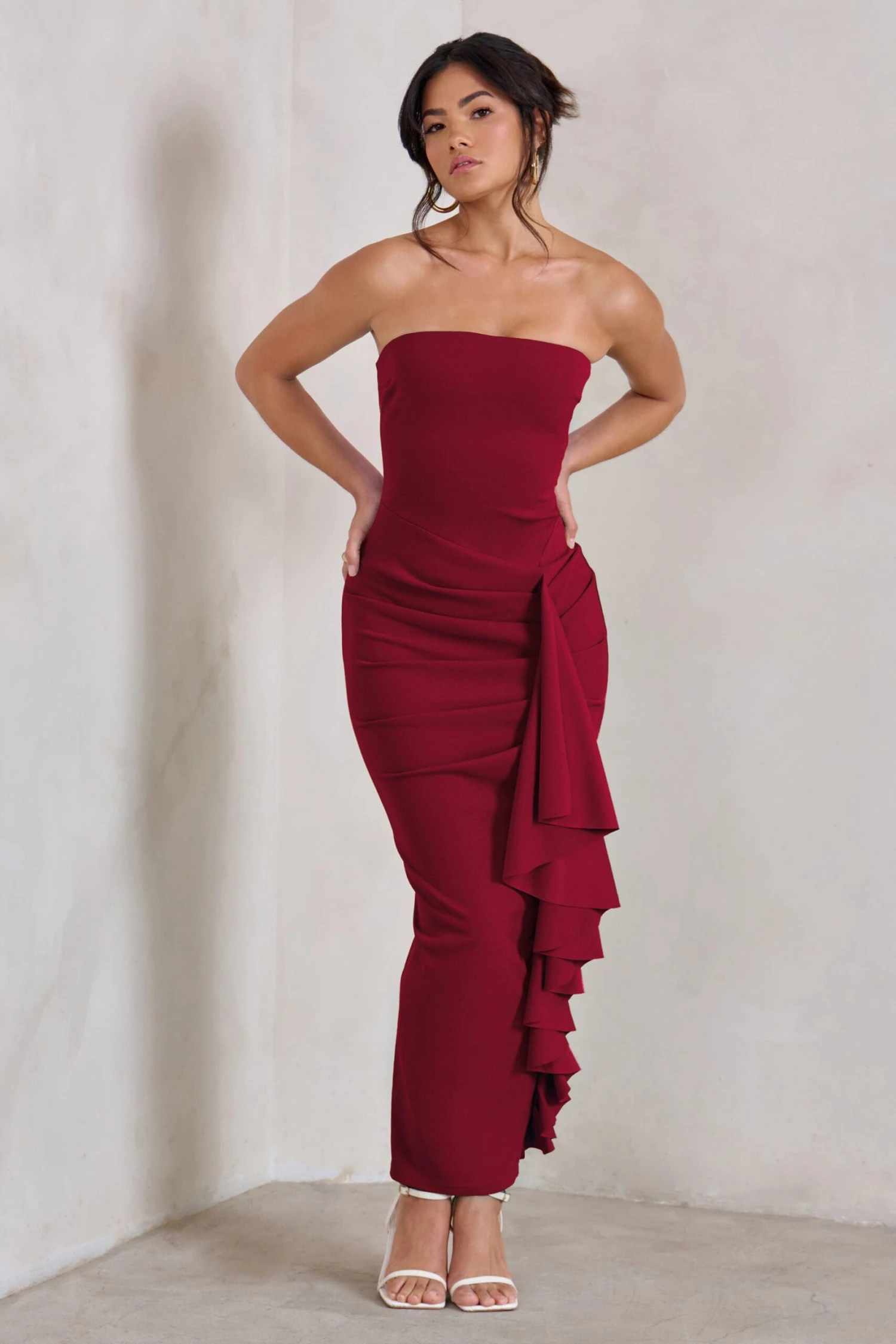 Fleur | Berry Bandeau Ruffle Maxi Dress