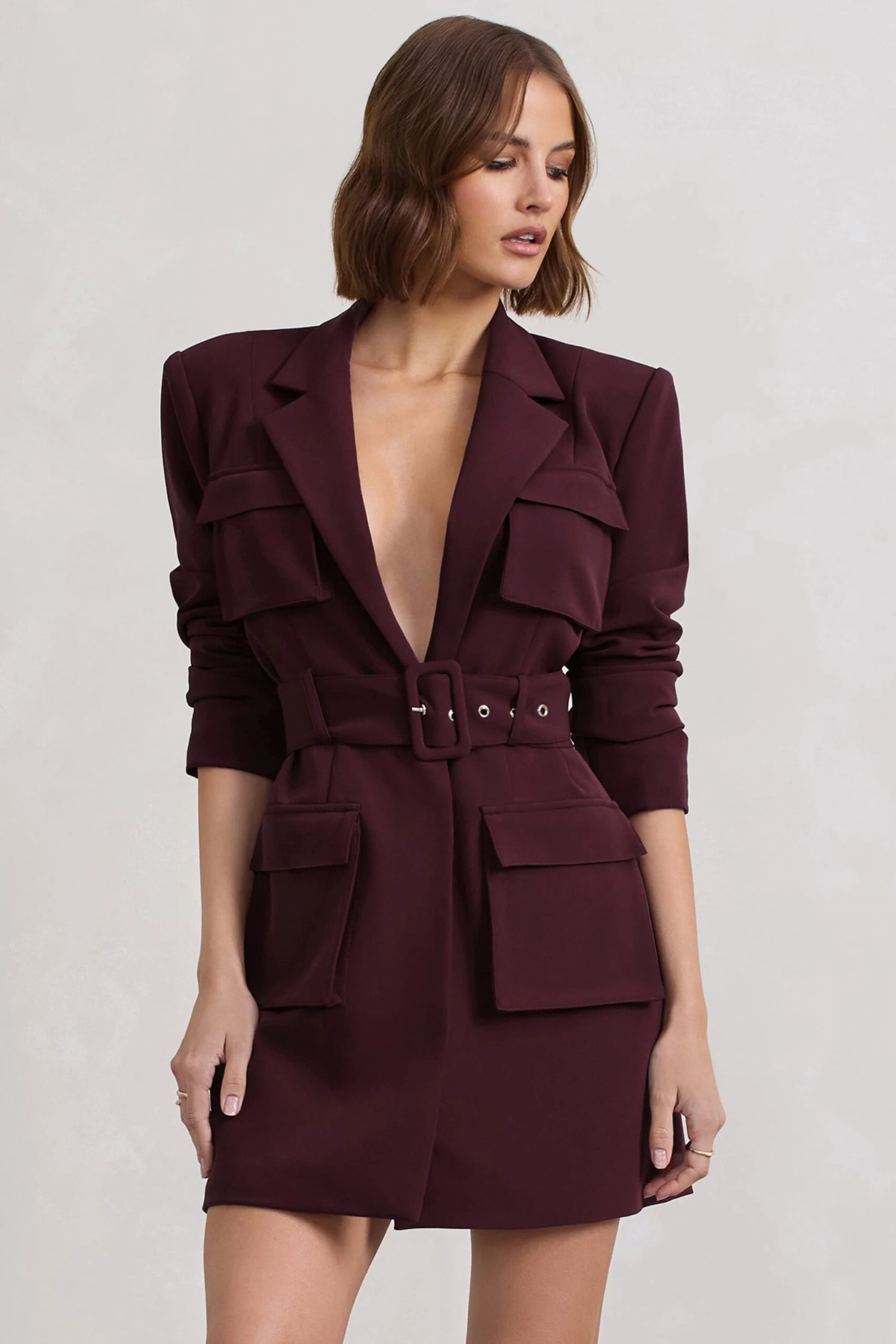 We’re taking on tailoring! Say hello to Genesis, our plum utility blazer mini dress. This stand-out fit is constructed in our premium stretch crepe, with it’s belt and pocket details bringing a new kind of energy. Make an impact at your next event by pairing Genesis with our Over It black boots and a sleek bun.