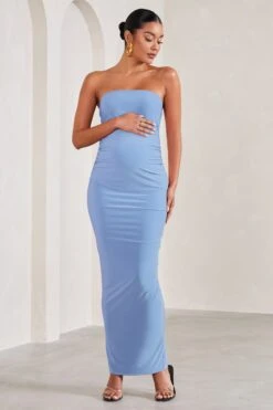 Tasteful and effortless, Juniper is the definition of the quintessential maternity dress. Crafted in a blue shade of our signature stretch jersey, this curve-hugging maxi dress showcases a minimalistic silhouette. Try styling this bandeau maxi dress with a sleek bun to show off your stunning décolletage.
