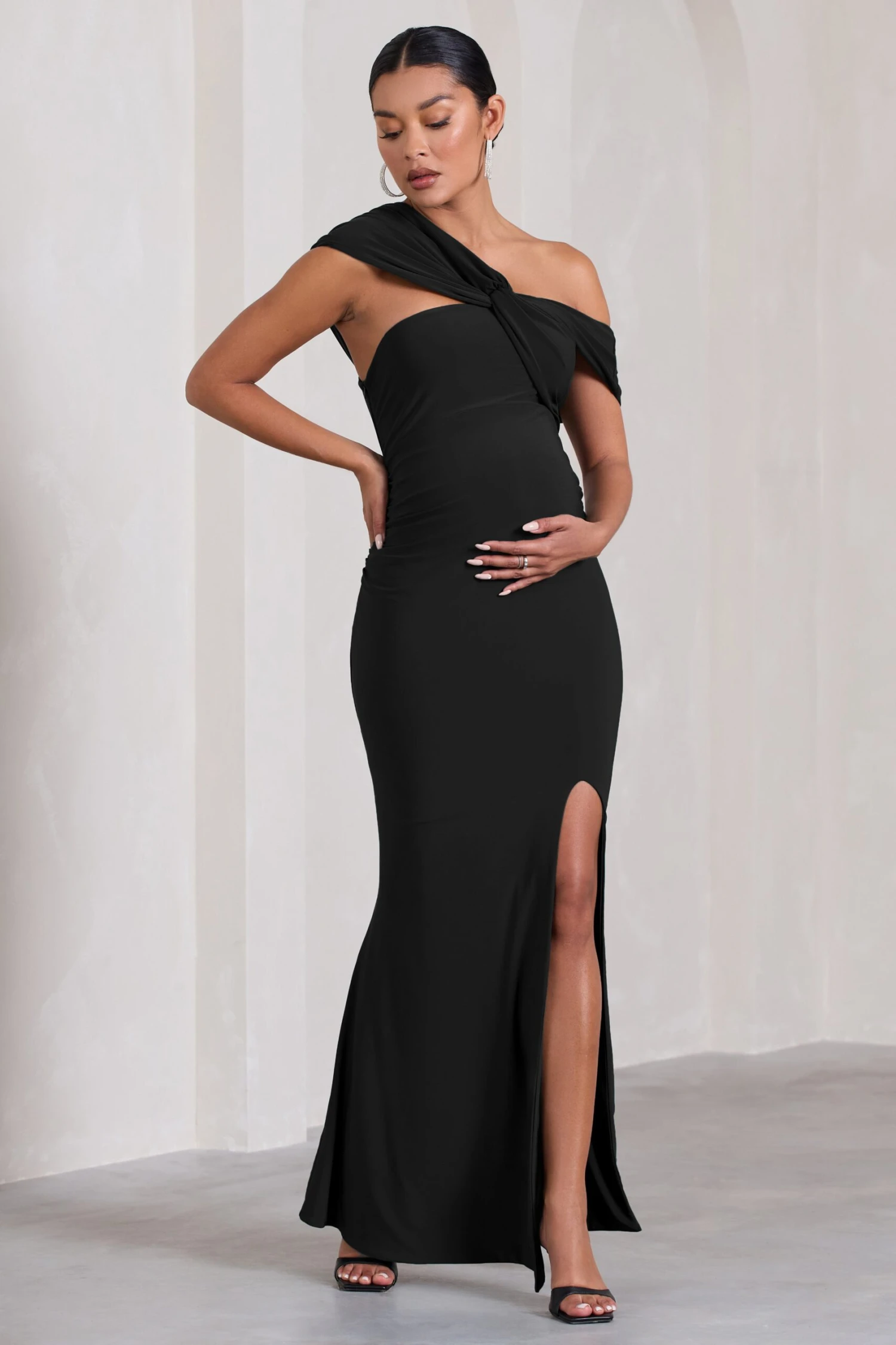 In search for the perfect black tie ensemble? Then look no further than our latest maternity maxi dress, Kara. Arriving in a classic black shade of our signature stretch jersey, Kara was designed with your comfort at the forefront. Defined by a twisted asymmetric neckline, bump ruching and high-leg split, theres so much to love with this timeless maxi dress.
