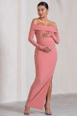 Crafted in a timeless silhouette, Kaylee was designed to see you through any occasion. This staple maternity maxi arrives in a soft pink shade of our signature stretch jersey known for its sculpting abilities. For the perfect dinner date ensemble, try styling Kaylee with some strappy stilettos and a sleek bun.Â
