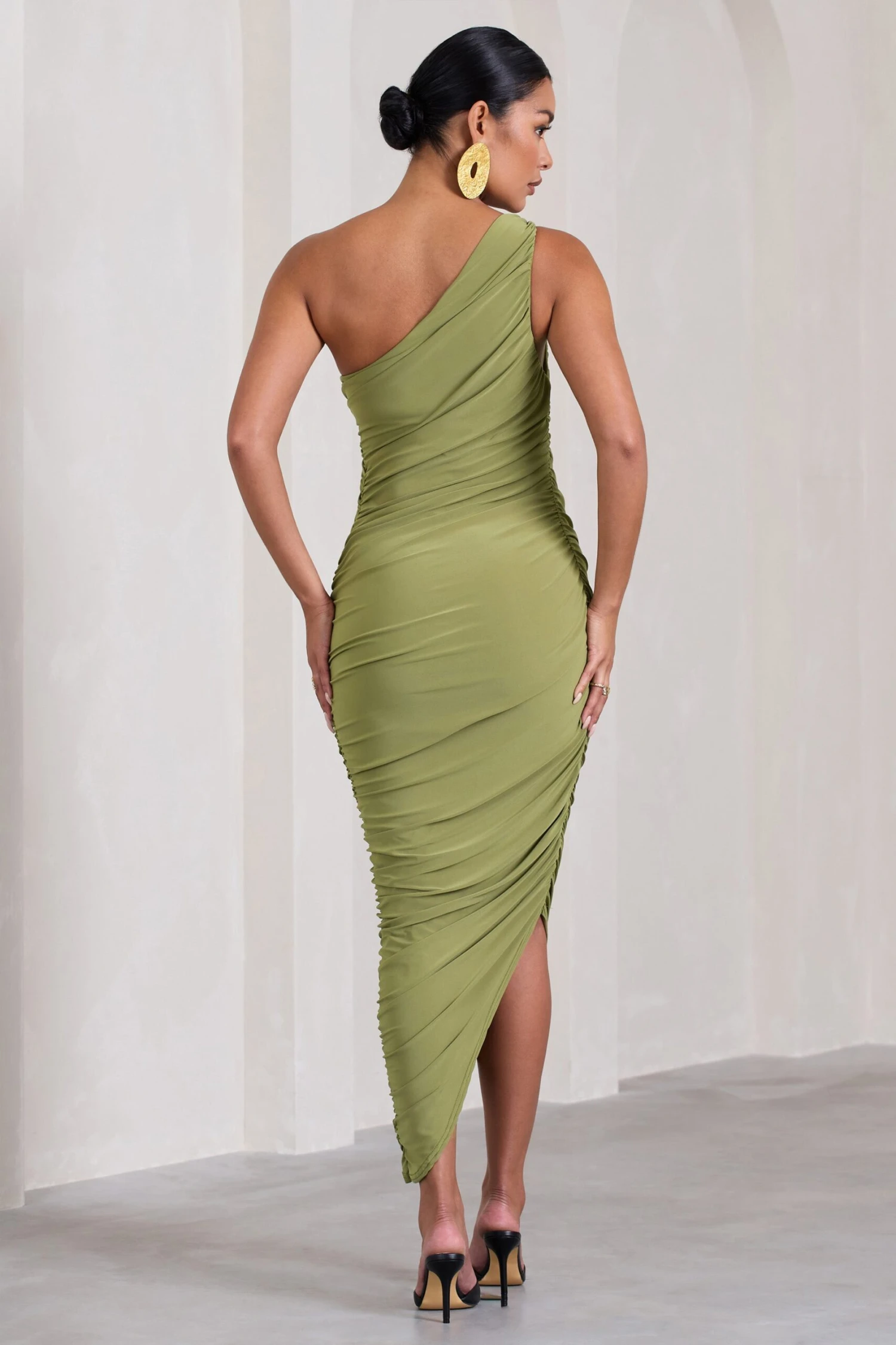 For a baby shower dress that will captivate but also contour your curves, you needn’t look further than this asymmetric midi. Late Night comes in our signature stretch jersey known for its sculpting capabilities and incredible comfort. Style this ruched maternity dress with gold hoop earrings to complement its soft olive hue.