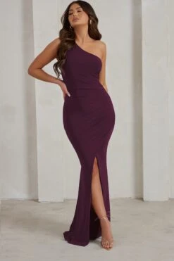 Lilou | Plum One Shoulder Wrap Skirt Maxi Dress