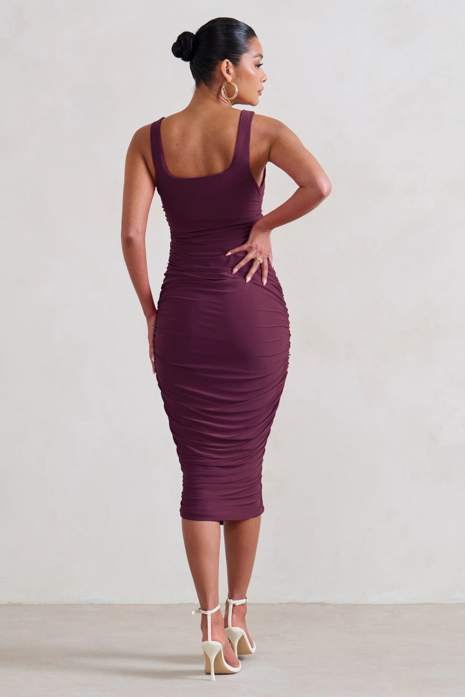 Lisbon | Plum Maternity Square Neck Ruched Midi Dress