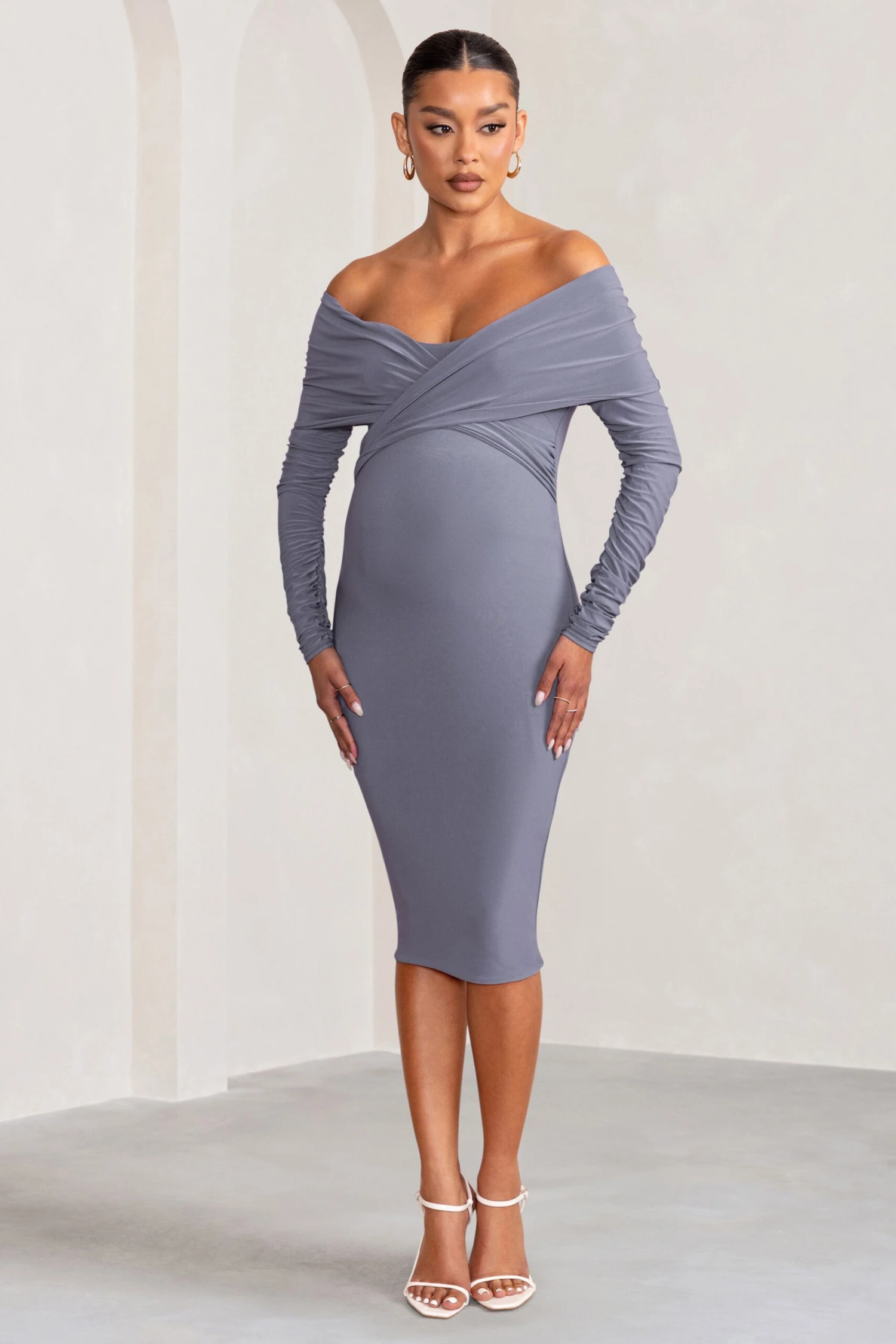 Little Star | Dove Grey Maternity Twist Front Midi Dress