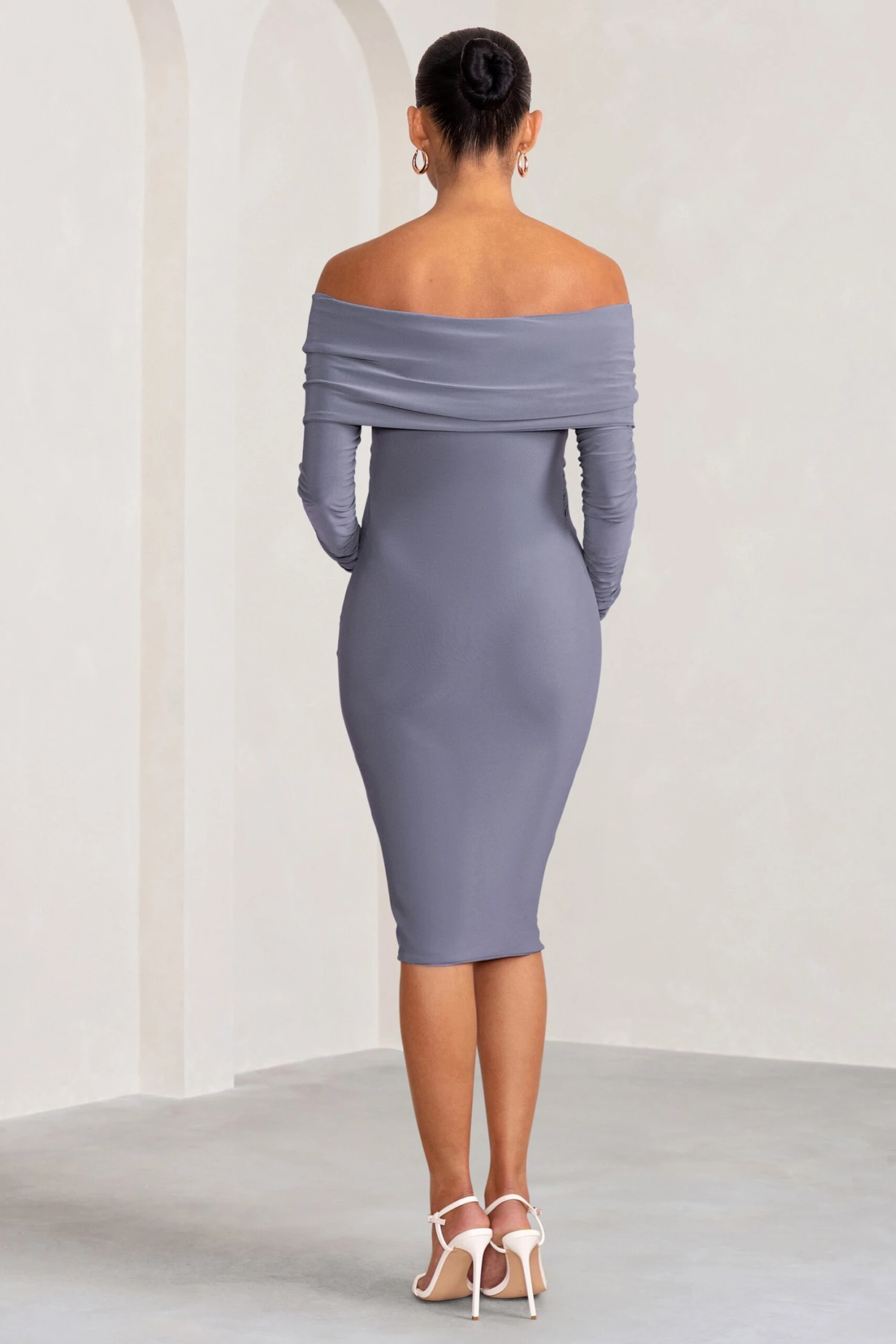 Add sophistication to your maternity wardrobe with this stunning mid-length gown, babe. Designed to contour your curves, our “Little Star” maternity midi dress is the gown you need to show off your gorgeous bump, babe. Fabricated in a premium stretch-jersey, and worked in a classy dove grey colour, this figure-hugging design will sculpt your silhouette. The twist-front detail adds a feminine edge and the Bardot neckline enhances your bust.