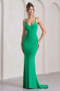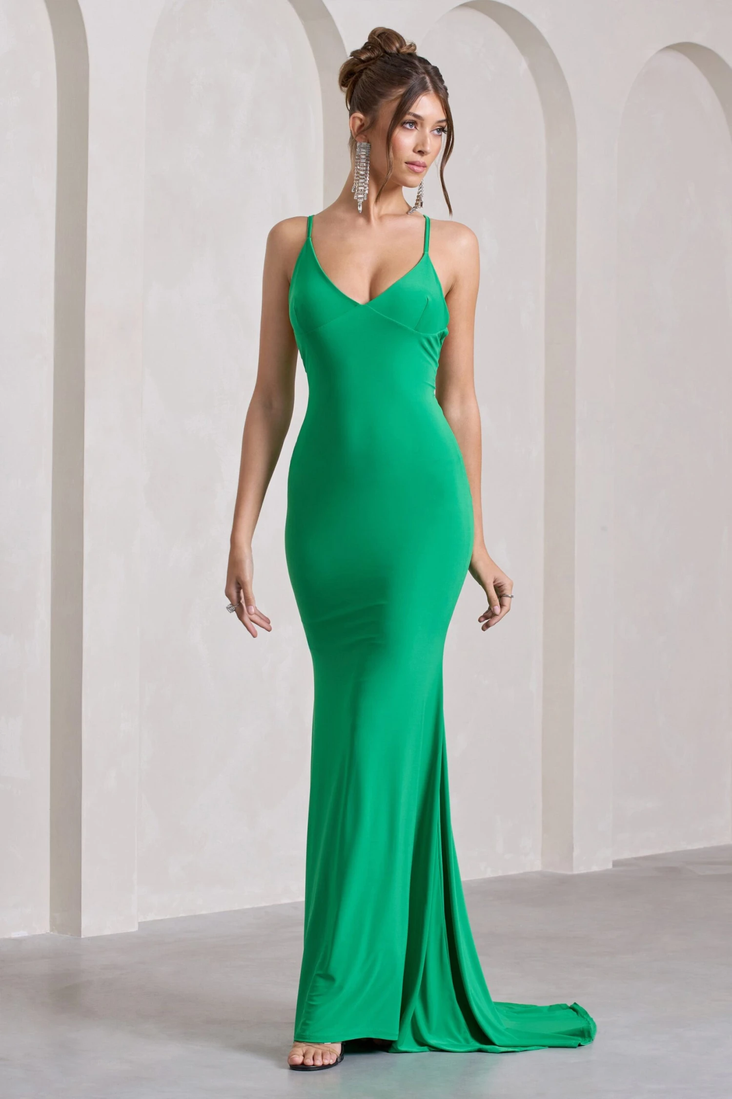 Lucky Number | Green Cross Back Fishtail Maxi Dress