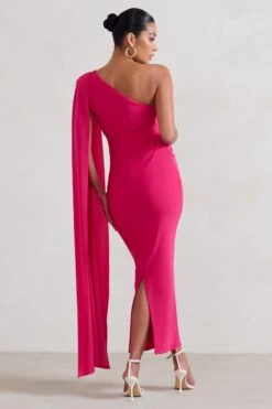 Celine | Forest Green Asymmetric One Shoulder Ruched Maxi Dress With Curved Cut Out