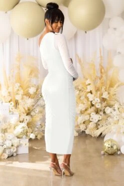 Sweet Dreams | Mocha Maternity Ruched Sheer Sleeve Midi Dress
