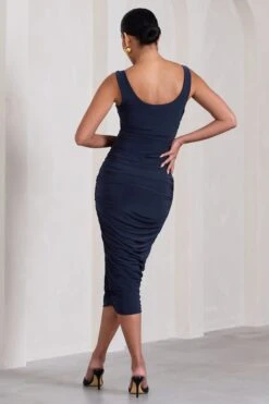 Sweet Dreams | Powder Blue Maternity Asymmetric Ruched Midi Dress