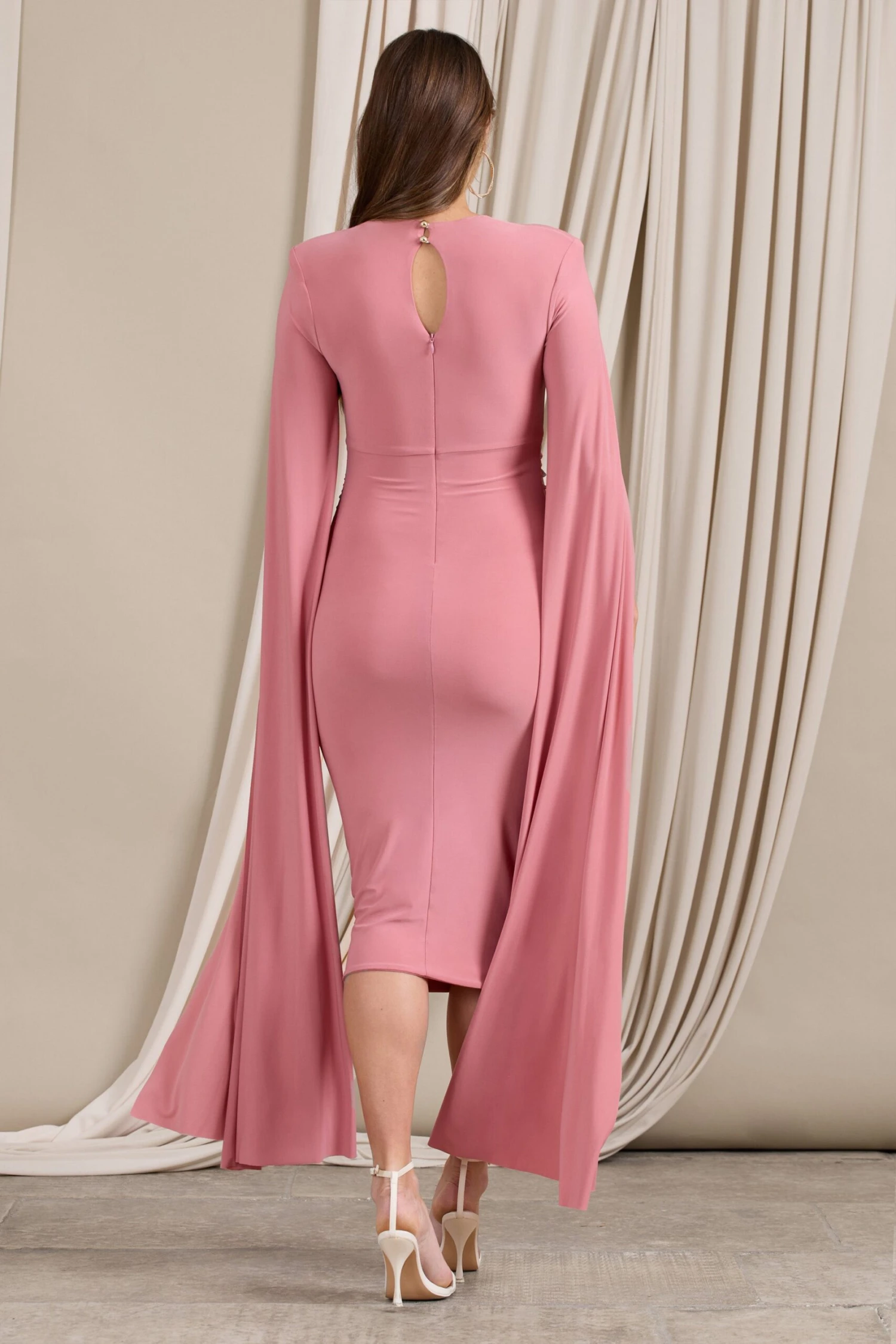 Be the first to review “Meaningful | Blush Pink Maternity Midi Dress With Cape Sleeves” Cancel reply