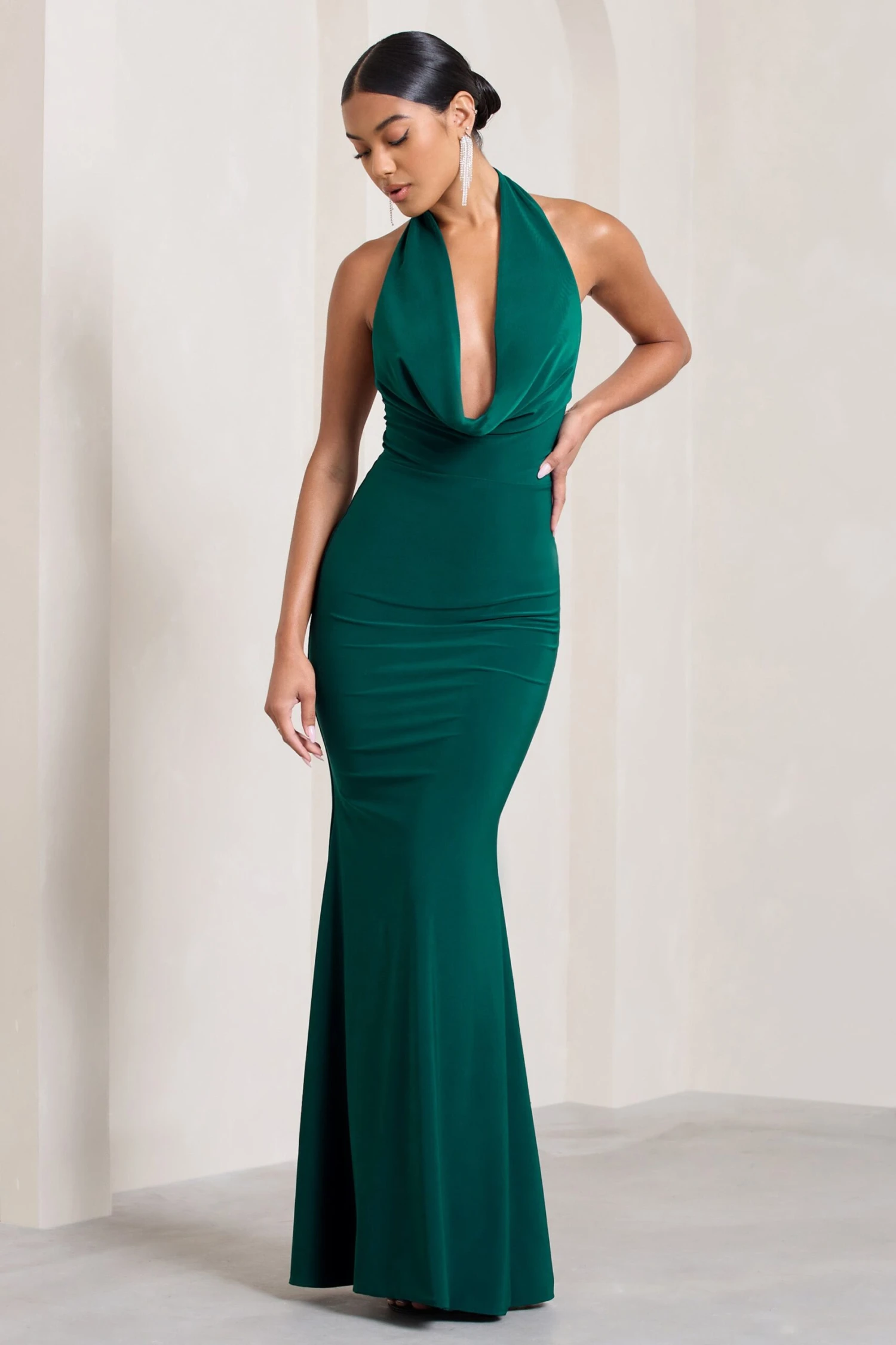 Milani | Bottle Green Backless Cowl Neck Fishtail Maxi Dress