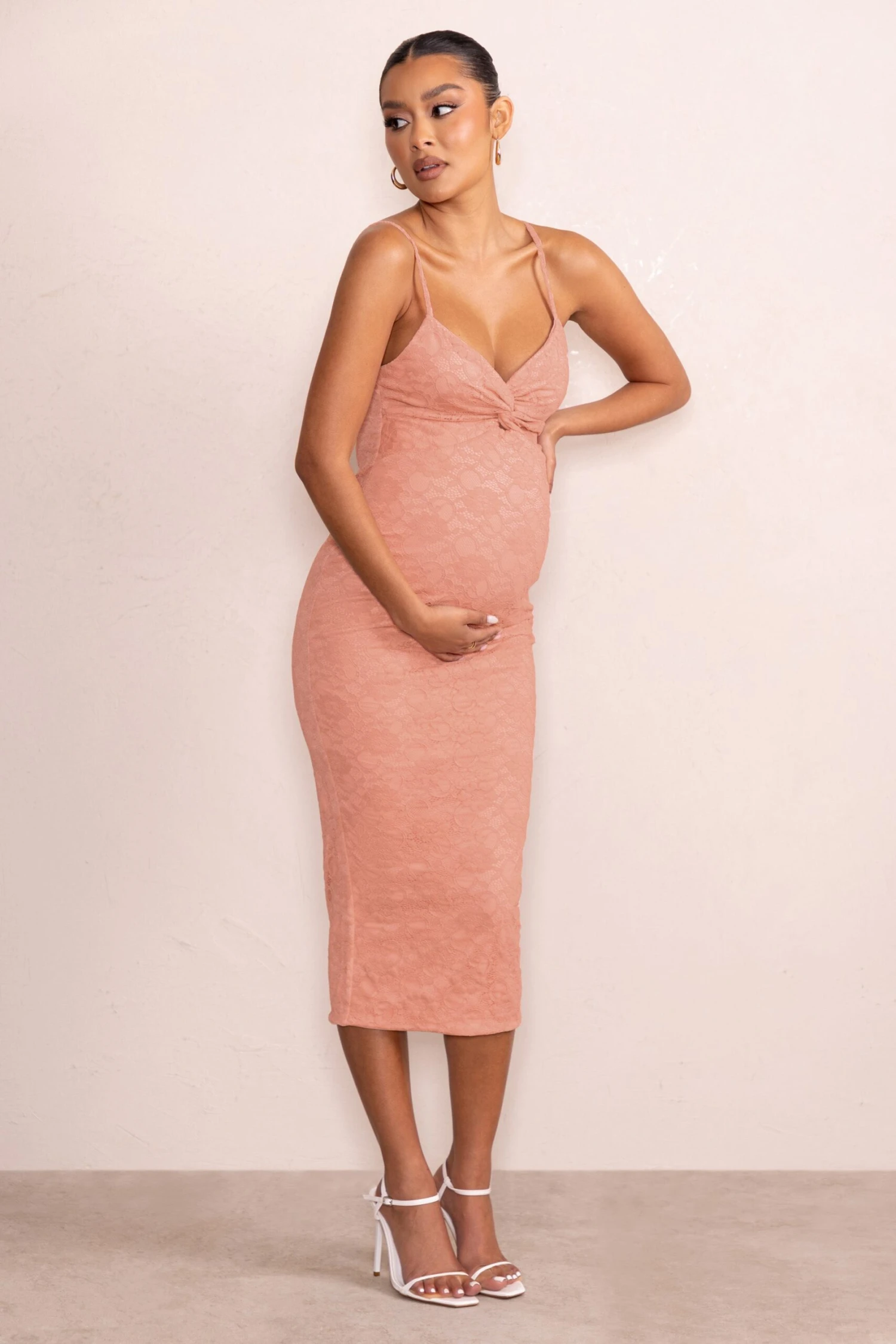 Sophisticated yet sultry, Nelly is a gorgeous option for any upcoming events. Crafted in our stretch lace, this nude dress will contour your curves for a seamless silhouette. Featuring cami straps and a sweetheart neckline with twist detailing, this midi dress perfectly juxtaposes glamour and feminine style. Stand out in Nelly.