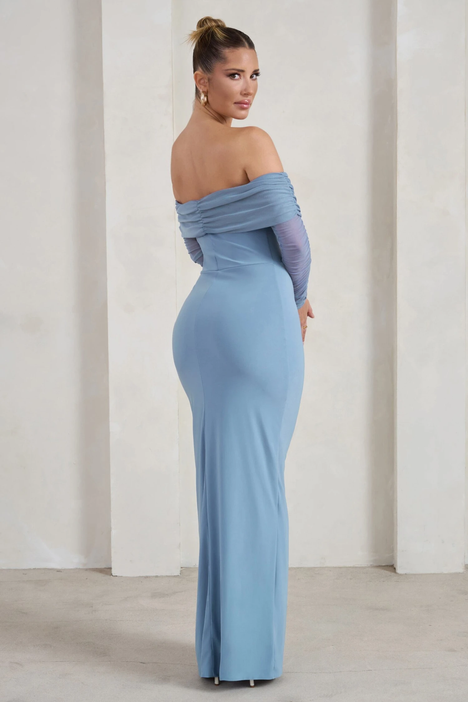 On Your Mind | Powder Blue Mesh Long Sleeve Maxi Dress
