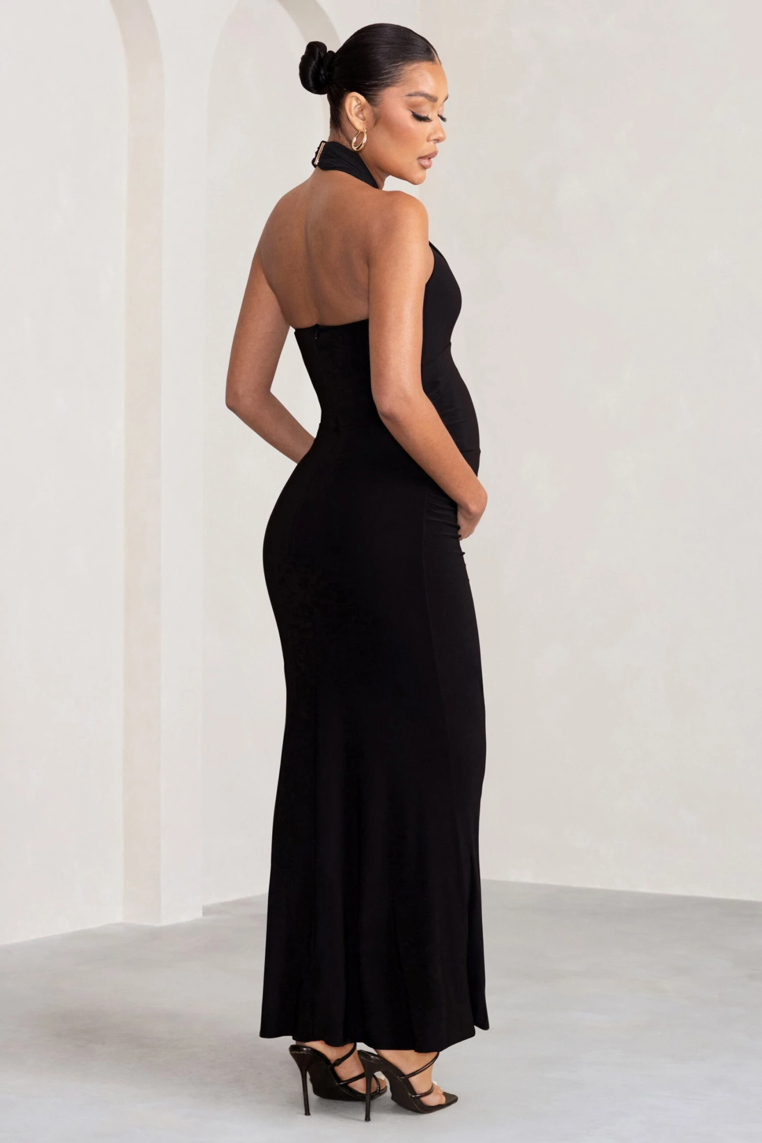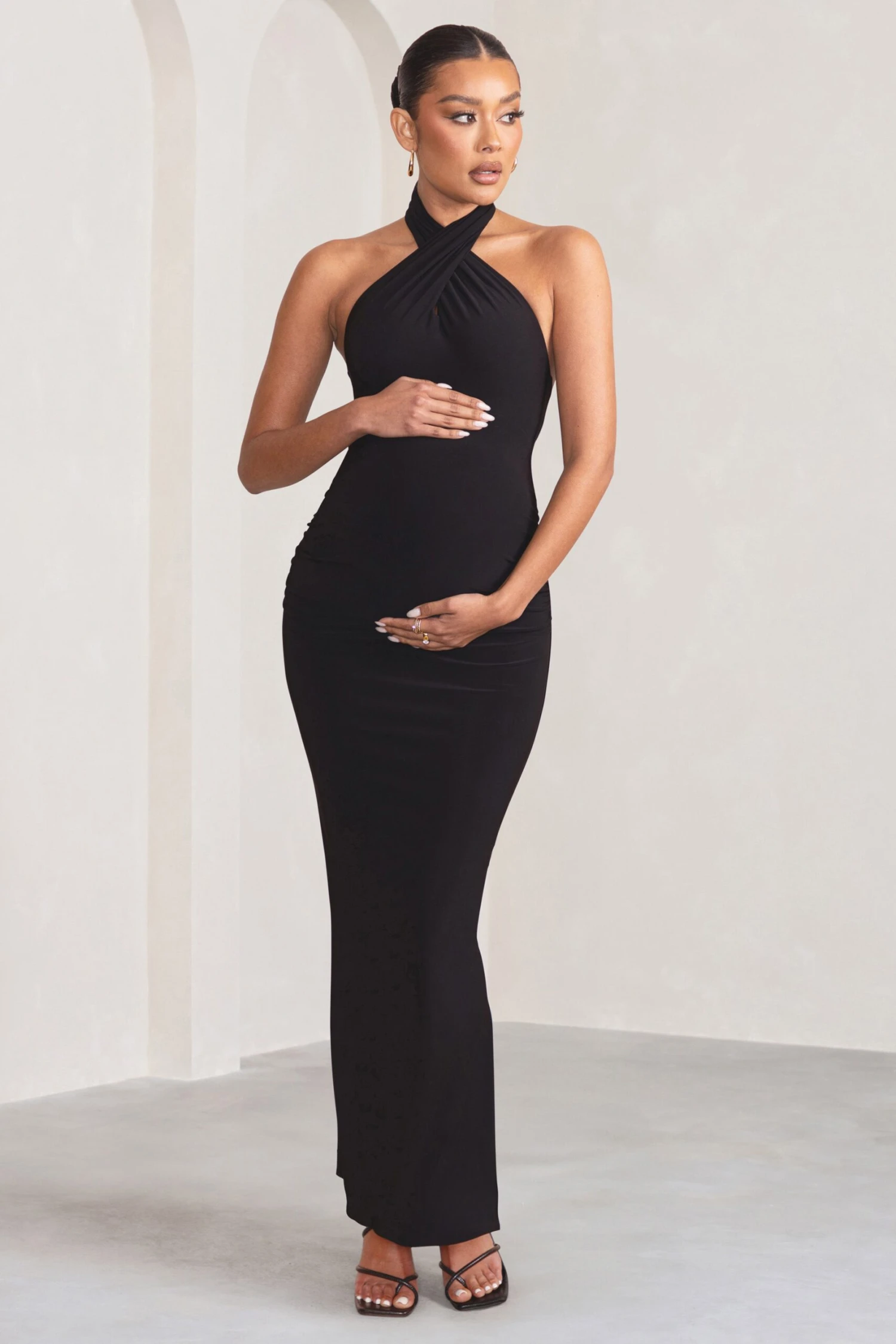 Opt for a high-impact look in Orianne. This gorgeous floor-length maternity gown is perfect for your next black-tie event. Crafted in our premium double-lined jersey and featuring a cross-over halter neckline, this dress will skim your silhouette so that you can step out in confidence.