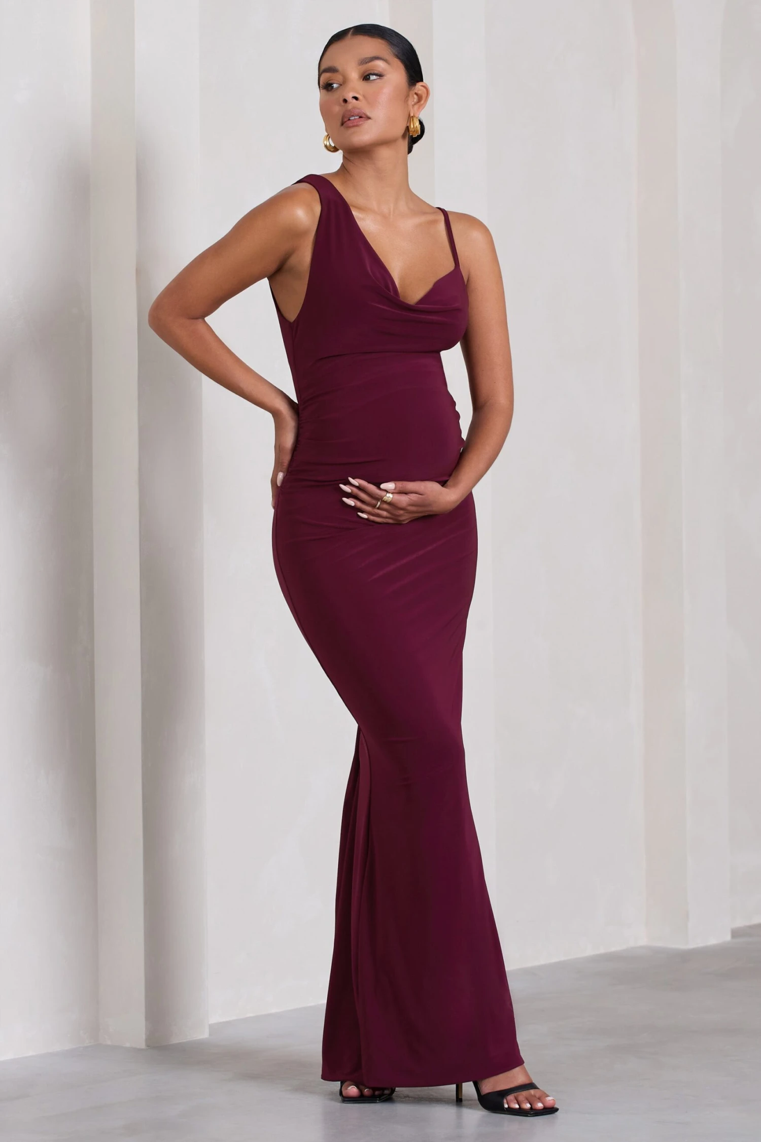 Despite this maxi dress’ imaginative name, it’s certainly not make believe. Our floor-length Phantasy gown is asymmetric in silhouette with a classic burgundy colouring to complement any skin tone. Phantasy also features two contrasting shoulder straps and a fishtail skirt, making this maternity maxi the perfect option for that upcoming baby shower.