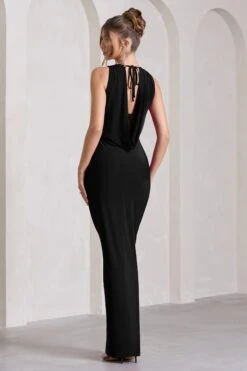 Night To Remember | Black Open-Back Split Maxi Dress