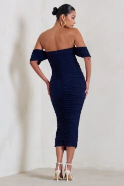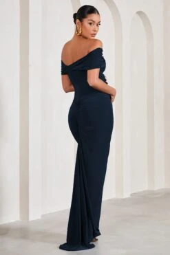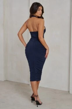 Glamour | Navy Backless V Plunge Halter Neck Maxi Dress With Side Split
