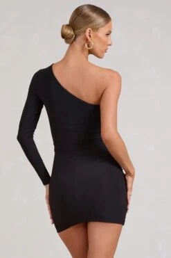 Late Night | Bottle Green Asymmetric One Shoulder Ruched Midi Dress