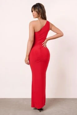 Late Night | Bottle Green Asymmetric One Shoulder Ruched Midi Dress