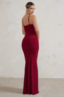 Lifetime | Burgundy Satin Cowl Neck Maxi Dress With Cross Back Detail