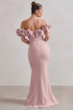 Esmeralda | Blush Pink Structured Statement Bardot Maxi Dress