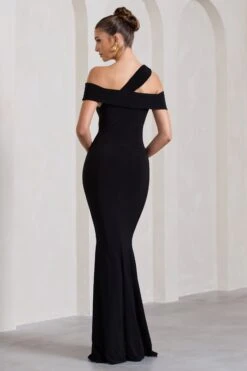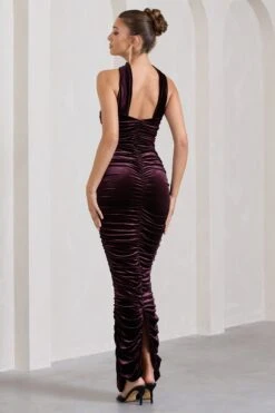 Cherish Me | Gold Satin Asymmetric Cowl Maxi Dress With Feather Strap