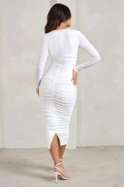 RSVP | Ivory Asymmetric Volume Sleeve Draped Feather Mini Dress