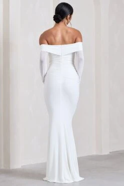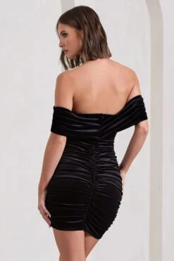 Deserving | Black Satin Bardot Sleeve Corset Wrap Midi Dress