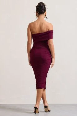 Embrace all things floral this season with a new feminine dress like our rose-embellished Rosy. Crafted in supportive stretch jersey with ruching to flatter your rear, this berry midi dress also features a draped cowl neckline, an open back and a subtle hem split. Pair Rosy with silver hoop earrings for a classic birthday or baby shower look.