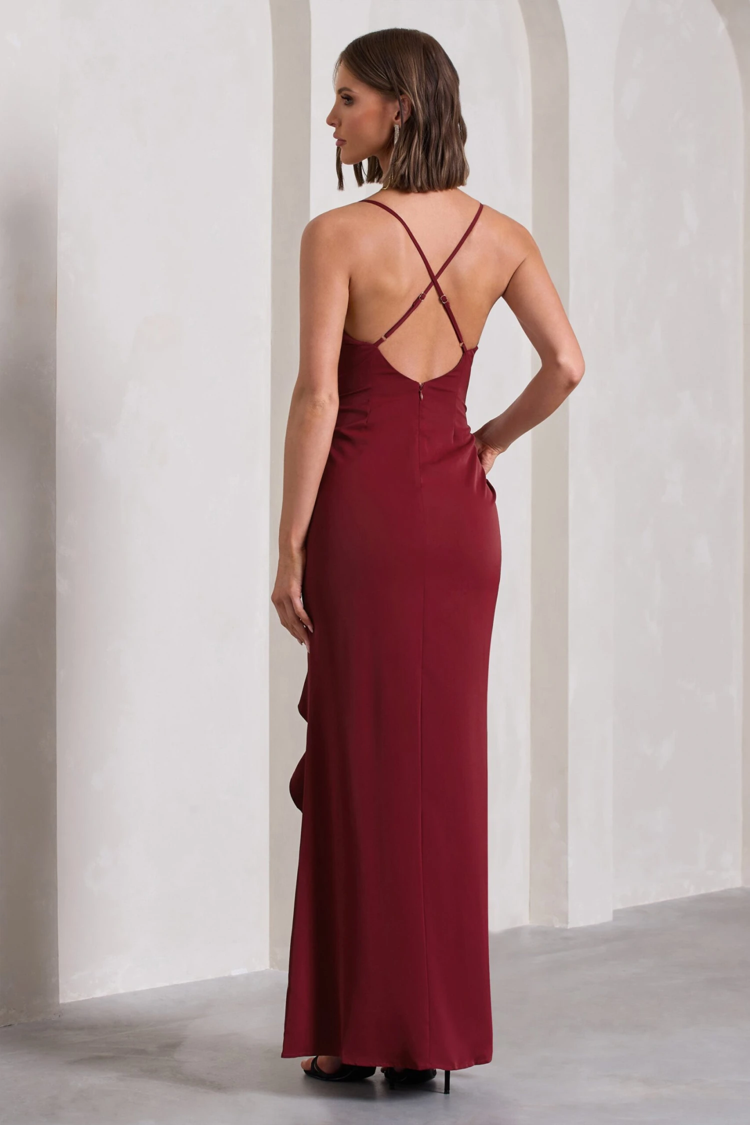 Run The World | Burgundy Sweetheart Neckline Ruffle Maxi Dress
