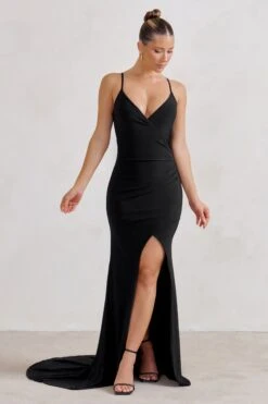 Sammi | Black Cami Plunge Wrap Maxi Dress
