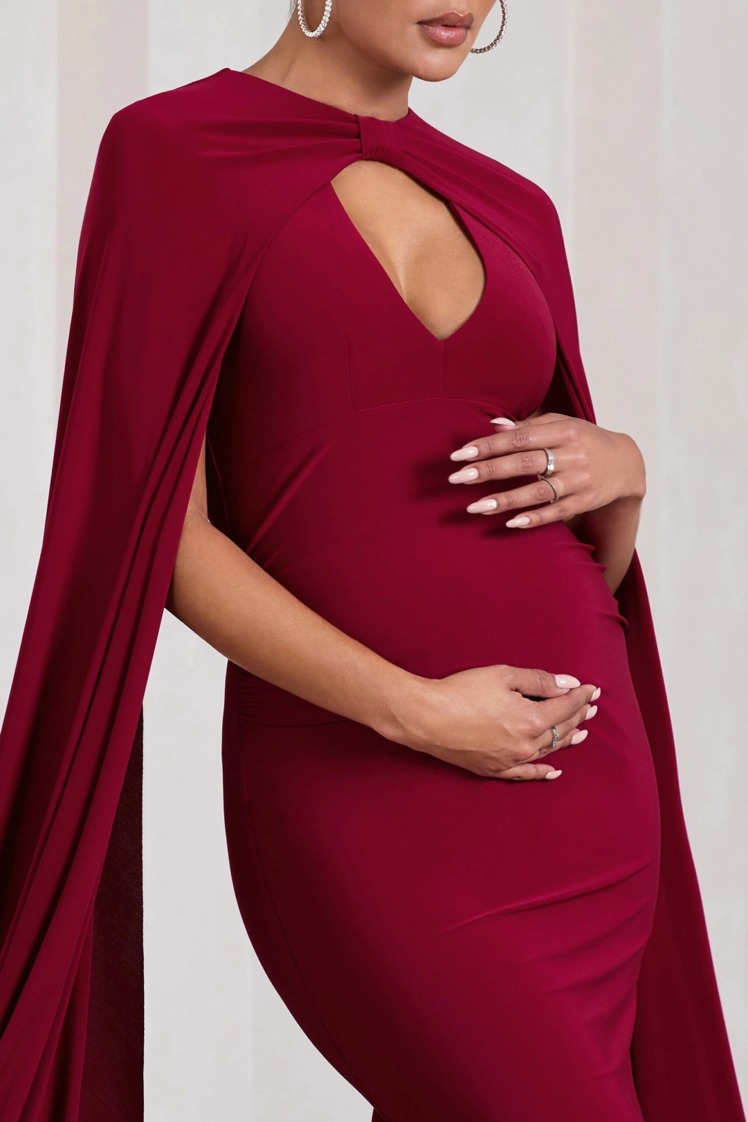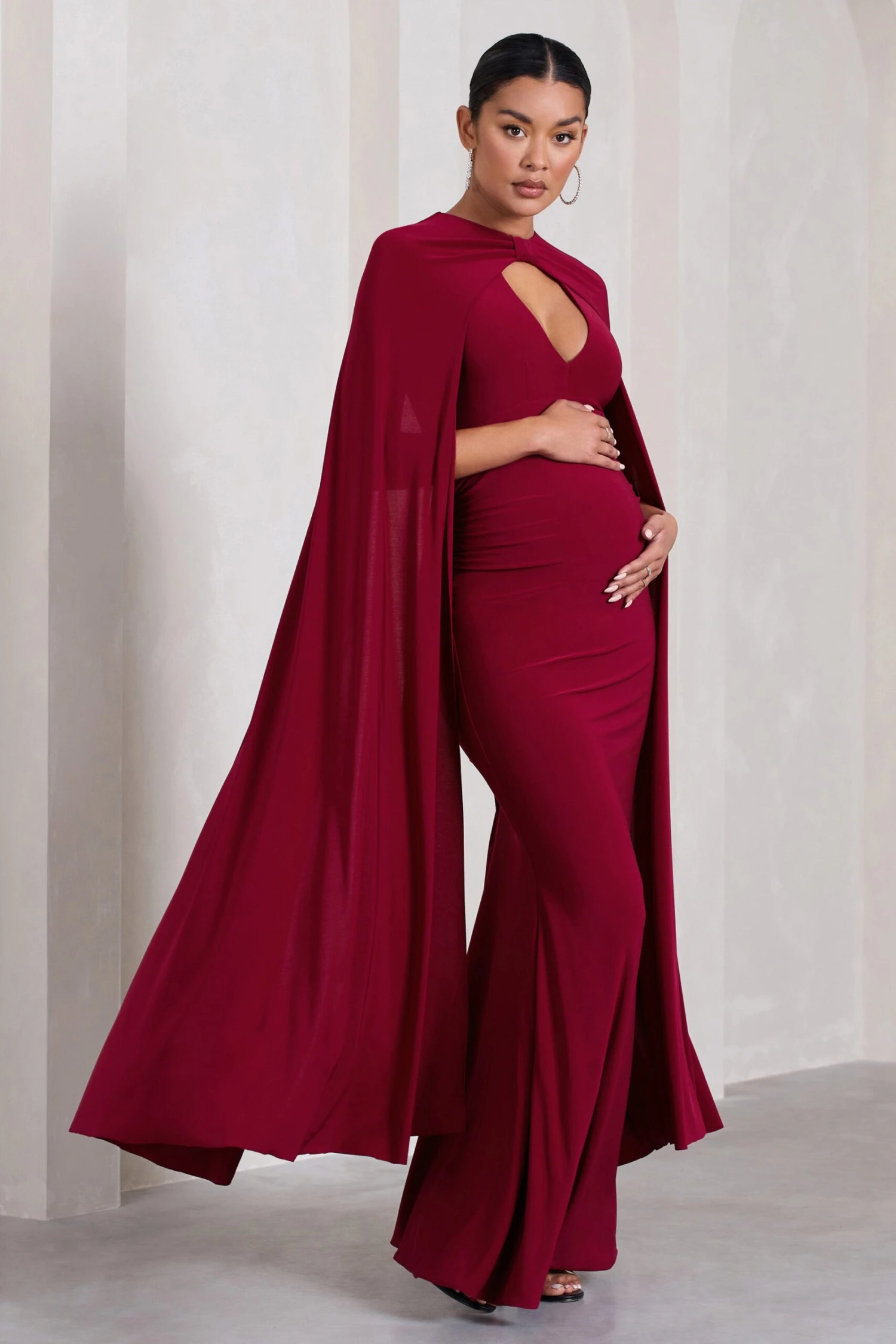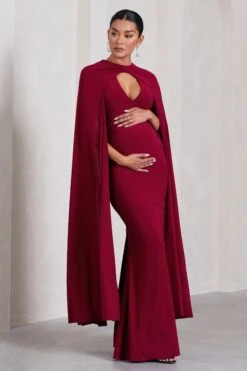 Opt for opulence at your next black tie event in Standing Ovation. This enchanting berry maternity maxi dress was designed in our signature stretch jersey that hugs each curve and effortlessly accentuates your frame. Defined by extravagant cape sleeves, keep Standing Ovation at the forefront by styling it with a tousled bun and strappy stilettos.Â