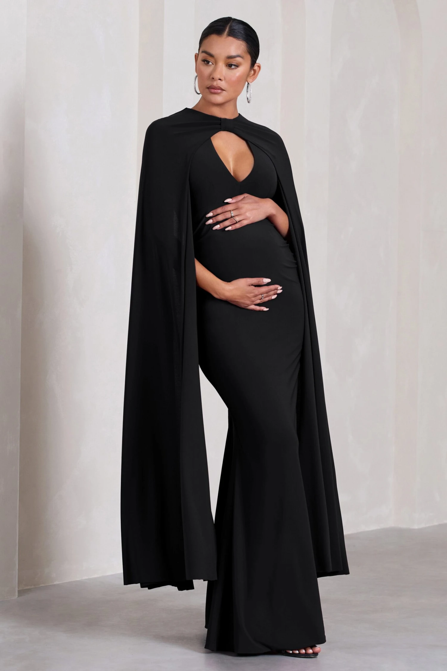 Opt for opulence at your next black tie event in Standing Ovation. This enchanting black maternity maxi dress was designed in our signature stretch jersey that hugs each curve and effortlessly accentuates your frame. Defined by extravagant cape sleeves, keep Standing Ovation at the forefront by styling it with a tousled bun and strappy stilettos.Â