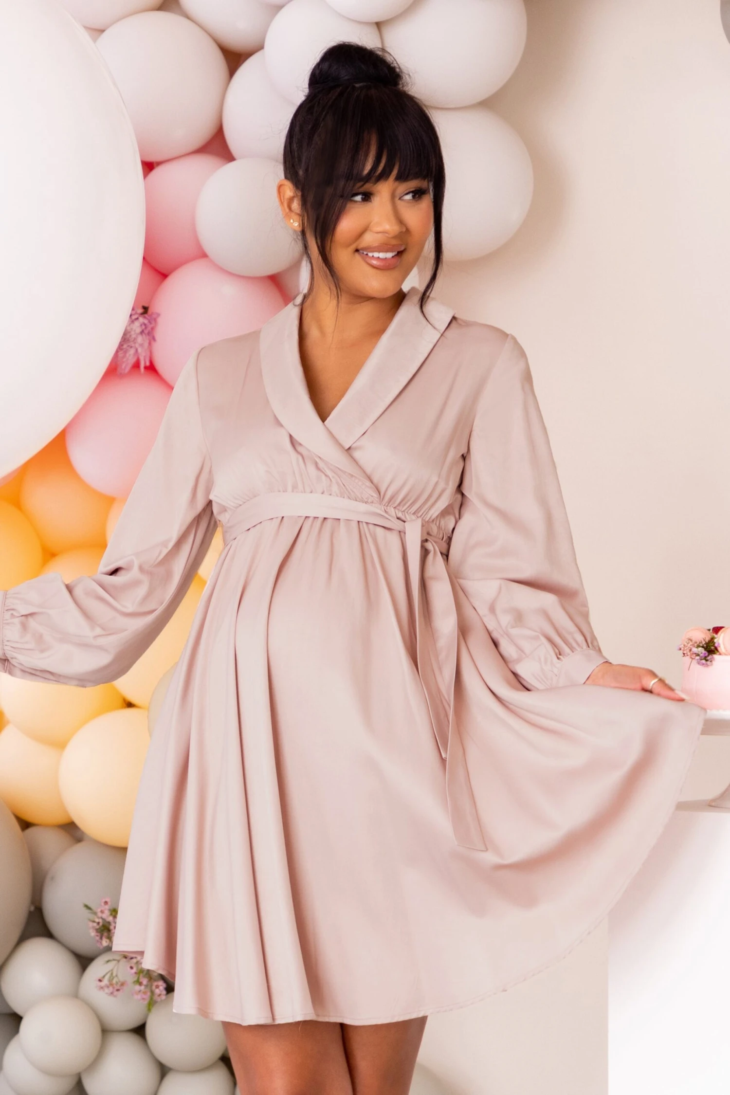 Satin is the new black this season, babe. Our dreamy ”Sweet Lullaby” will hug your beautiful bump to perfection with its chic waist belt and a plunging neckline revealing your sophisticated collar bones. Perfect for your baby shower or any special events coming up in your agenda this season.