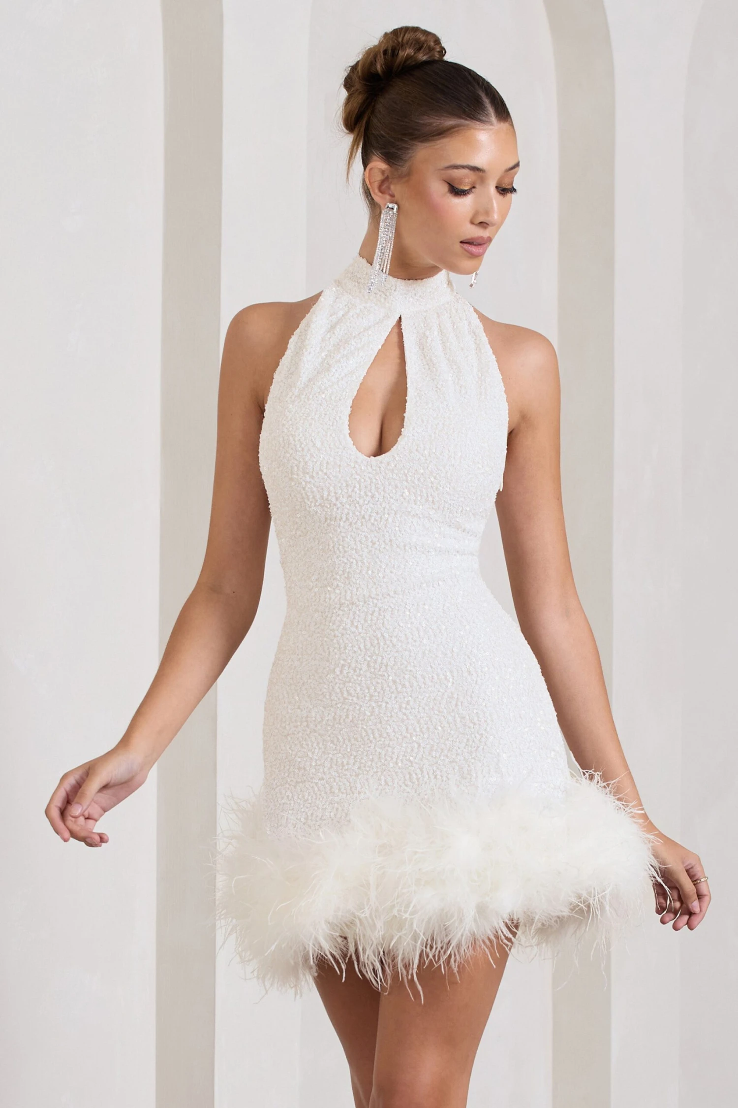 Cosmo | Powder Blue Bandeau Corset Maxi Dress With Feather Trim
